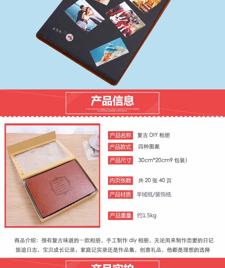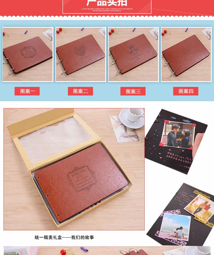 皮质手工diy相册影集本粘贴式宝宝成长情侣拍立得生日礼物纪念册