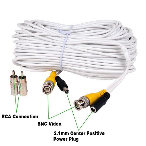 -. Binding : Electronics -. Brand : VideoSecu -. Color : White -. EAN : 0791090653251 -. Feature : Plug and Play ready; For camera with DC power only / 100 feet video/power cable in white / BNC video & 2.1mm power connectors / All-in-one video and power cable / BNC connectors and includes 2 RCA/BNC adapters -. Label : VideoSecu -. Manufacturer : VideoSecu -. Model : FBA_CBV50 -. MPN : FBA_CBV50 -. PackageQuantity : 1 -. PartNumber : FBA_CBV50 -. ProductGroup : Photography -. ProductTypeName : SURVEILANCE_SYSTEMS -. Publisher : VideoSecu -. Size : 100 feet -. Studio : VideoSecu -. Title : VideoSecu 100ft Feet Video Power Cable BNC RCA Wire Security Camera Cord for CCTV DVR Home Surveillance System with Bonus Connector CBV100W CWX -. UPC : 791090653251