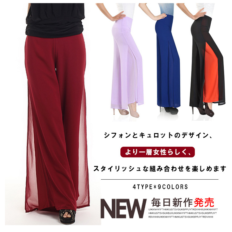 | シフォンとキュロットのデザイン、より一層女性らしく、スタイリッシュな組み合わせを楽しめます。ストンと落ち感が美しい。軽やかな生地は優しい肌触り、掛け心地も良いです。ゆったりスカート風デザインは着痩せ効果バツグン。ウェストゴムだから楽に着られる。体型を気にせずに着られるゆったり身幅、リラックス感も楽しめる。 優しい表情のベーシックカラー、季節っぽさたっぷりの1枚。 | |