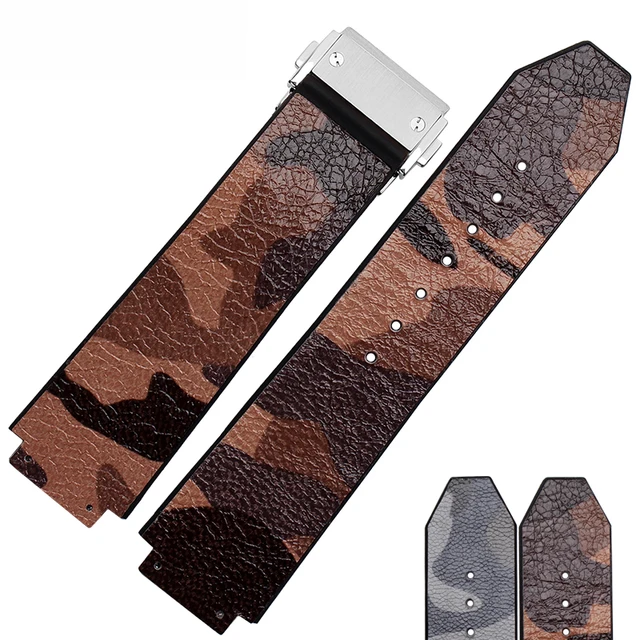 [해외]25*19 미리메터 고품질 카모 컬러 스트랩 정품 가죽 손목 접이식 배포 버클 무료 배송