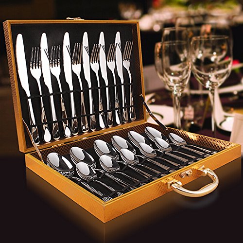 YOMYM 24-Piece Flatware Set Cutlery Set , 4 Piece silver Stainless Steel Dinnerware
