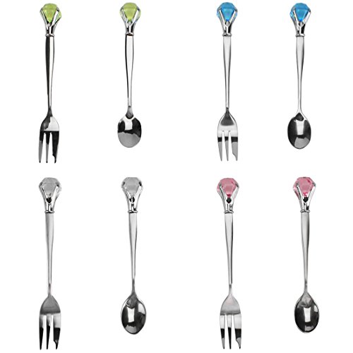 kilofly Rhinestone Dessert Pastry Fork & Tea Spoon Value Pack, 4 Sets