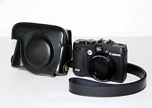 Black PU Leather DSLR Camera Shoulder Strap Bag Cover for Canon PowerShot G15 G16