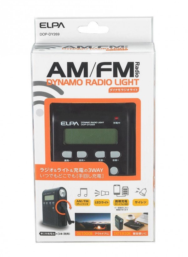 ラジオ&ライト&充電の3WAY。コンパクトなので普段はお部屋で聴くラジオとして、また持ち運び簡単でアウトドアにも最適。 |