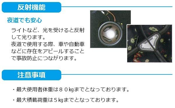 | 仕様 | SGマーク取得済 最大使用者体重:80kg 最大積載荷重:5kg バッグ容量:約16L |