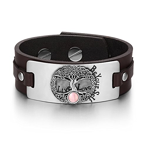 -. Title : Tree of Life Live Love Be Your Self Celtic Magic Amulet Pink Simulated Cats Eye Brown Leather Bracelet