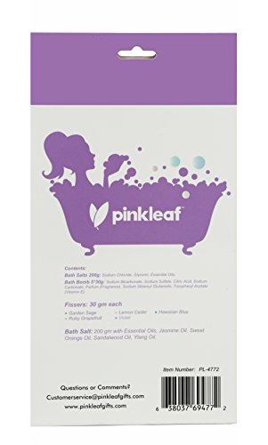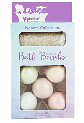 -. Feature : RELAXATION AT ITS FINEST: Bid farewell to all of your cares, stresses & worries while also indulgently pampering the skin by simply taking a soak in a relaxing bath upgraded with our salts & bath bomb additives! / ESSENTIAL OIL BATH SALTS: Each spa gift pack includes a 200g bag of premium bath salts that have been infused with a beautifying blend of soft jasmine, sweet orange, pure sandalwood & therapeutic ylang ylang essential oils. / •5 MINI BATH BOMB BALLS: Every Pinkleaf spa gift set also comes with 5 bath bombs that fill your tub with softening vitamin E & tons of fizzy fun! (Garden Sage, Lemon Cedar, Hawaiian Blue, Ruby Grapefruit & Violet) / THOUGHTFUL SPA GIFT SET: Complete with everything needed to take a soothing soak, the bath bomb variety pack makes a special gift idea for ladies of all ages. Teen girls love our fizzer bath bombs but so do older women! / GREETING CARDS INCLUDED: To make giving our bath bomb gift set easier than ever before, every spa gift package comes with assorted greeting cards. Choose your occasion, write your message & give it with the bomb & bath salts set.