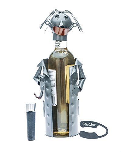 Female Dentist (Wearing a Coat ,Mouth Is Covered with Mask, Holding a Drill Plus a Tray) Wine Bottle Holder Plus a Wine Foil Cutter and a Wine Bottle Vacuum Stopper