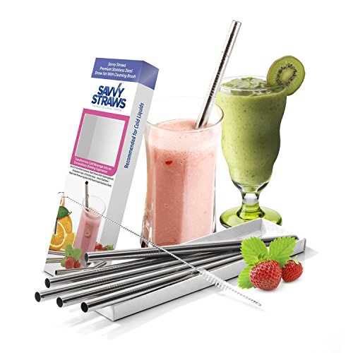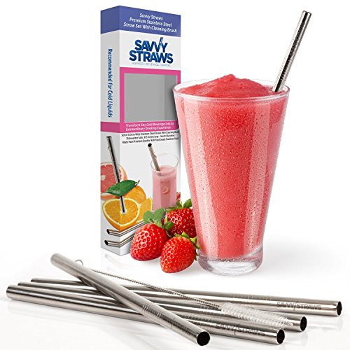 SUPERIOR DESIGN - Our premium stainless steel straws are 8.5 inches long and extra wide (3/8 inch diameter) making them perfect for thick smoothies. NOTE: Our WIDE SAVVY STRAWS do NOT fit the opening of the lid to our stainless steel tumbler (sold separately), which comes with its own straw. They work great with the lid removed.