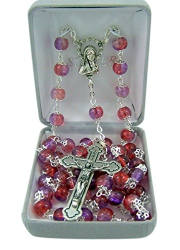 Catholic Pink Glass Capped Prayer Bead Rosary Necklace, 30 Inch