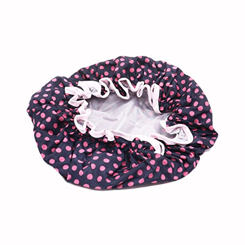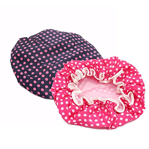 HUELE 2 pcs Waterproof Shower Bath Cap Adult Double Layer Bath Hat (Dark Blue & Rose Red Dot)