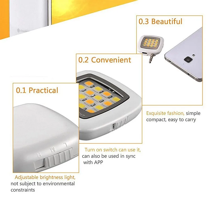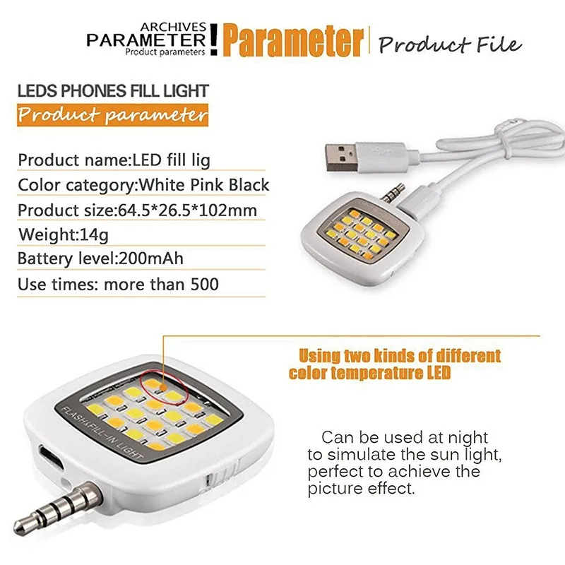 feature 3:Night fill light Selfie Flash LED Camera Lamp Light