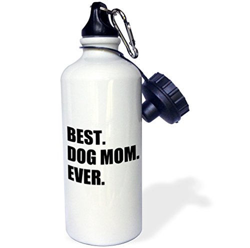 3dRose wb_184993_1 Best Dog Mom Ever-Fun Pet Owner Gifts for Her-Animal Lover Text Sports Water Bottle, 21 oz, White