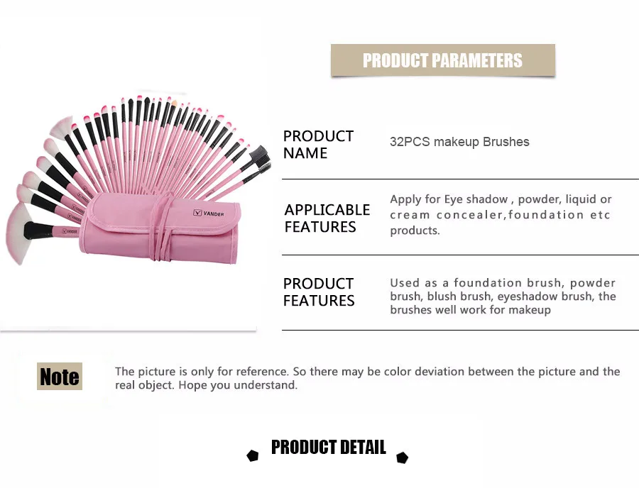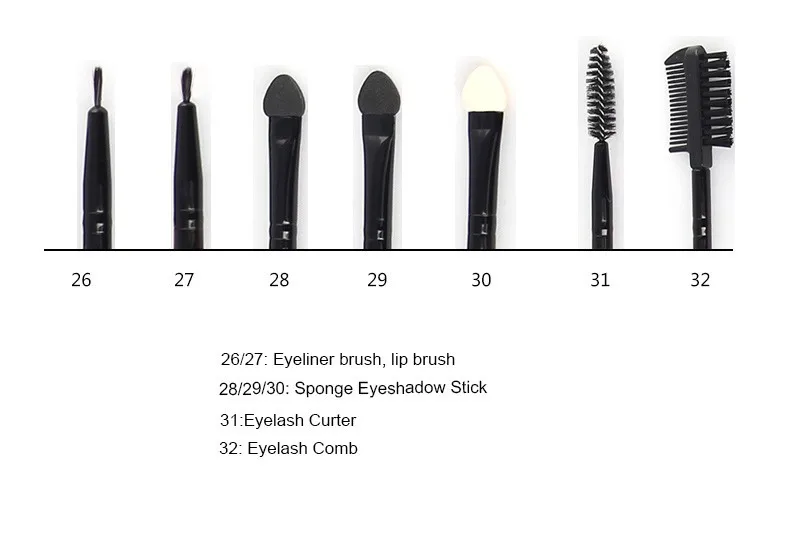 Package Include:1x 32pcs Makeup Brushes+ Bag