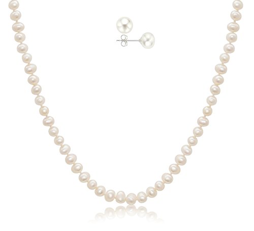 A lovely classic and complete gift-wrapped set for such unbelievable price- Truly Unbelievable! The luminous 6.5-7mm freshwater pearls are featured in this classic necklace, and chic stud earrings. The perfect gift that will delight her!