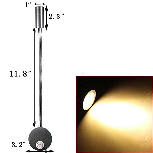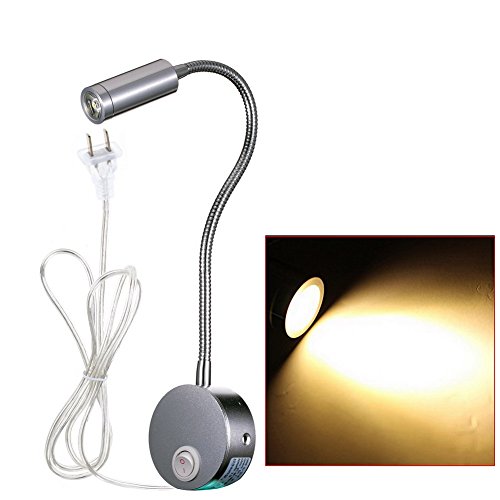 WannaBi Plug Wired Flexible 3 Watts 3W Gooseneck Led Wall Light Sconce Lamp Lighting for Bedroom Reading Bathroom with Plug