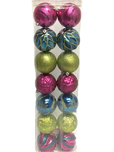 Christmas Ornaments Traditional 80mm Shatterproof, Set of 14, Fuschia, Light Green & Teal