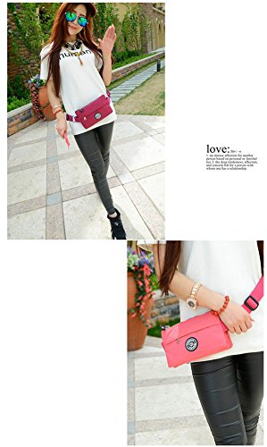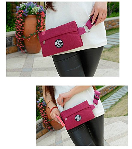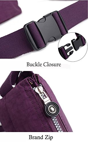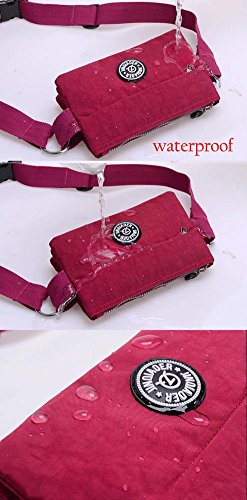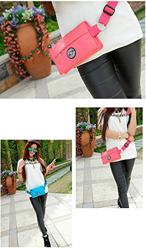 -. Feature : 3 Zippered compartments and 1 outside zip pocket; / Waist belt is adjustable. Fits lots of different size waists; / Outside is water-proof. Keep inside things safe even if in rainy day; / Size: 23*14*2cm Just right, either too big or small but it still can keep many stuff; / 9 Colorways, Multi-functional, Outdoor Sports as Hiking, Climbing, Running, Jogging, Cycling, Excursion, etc.