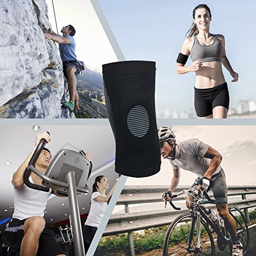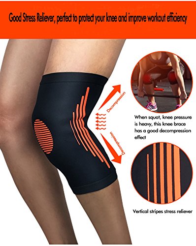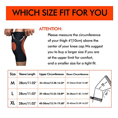 -. Feature : ♥KNEE SUPPORT: Moolecole compression knee sleeve is designed to provide an extra level of support during physical activities, arthritis and injury recovery, suitable for men, women and children. Its heat retaining feature enables the knee joint to stretch and function to its fullest potential and full range of motion. Durable silicone gel strips prevent knee sleeve from sliding down to keep it in place during intense activities. Perfect help to your health and fitness! / ♥PREVENT INJURY: This Knee Sleeve can reduce pressure and swelling during workout and sports proven to promote muscle recovery and prevent injury.Provides support to minimize pain during workouts, help to stabilize the knee to improve your performance. / ♥KNEE COMPRESSION: This Knee Brace can relieve muscle stiffness and soreness, providing help with pain and knee discomfort, arthritis, osteoporosis, tendonitis. It can reduce inflammation and swelling, stimulates blood flow, has a heating effect that promotes muscular recovery. The compression also helps to relieve muscle and joint pain and aids in muscle recovery & rehabilitation. / ♥WEAR INSTRUCTION: Pull the sleeve up over your knee so that the knee brace is centered a few inches above the kneecap. Pull the sleeve up for more compression or pull it down for less compression. / ♥SUPPORT IN SPORTS: This knee compression brace is absolute comfort in all sports that will relieve stress on the joints like basketball, football, tennis, volleyball, running, climbing, walking, hiking, wrestling, gym, baseball, golf, dancing, jogging, and much more.