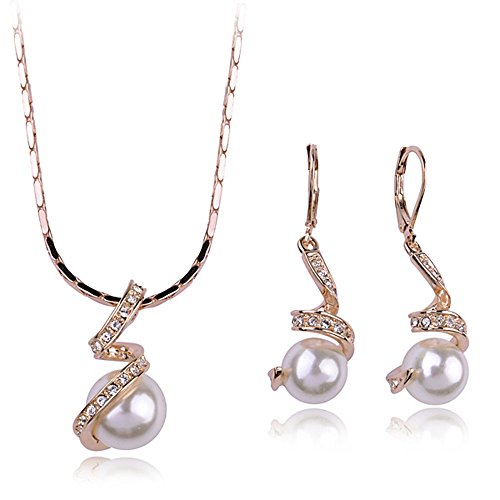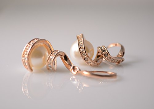 Georgios spiral pearl pendant and earrings jewellery set, pearls with swarovski elements tiny gems and 18k rose gold plated