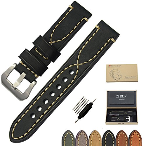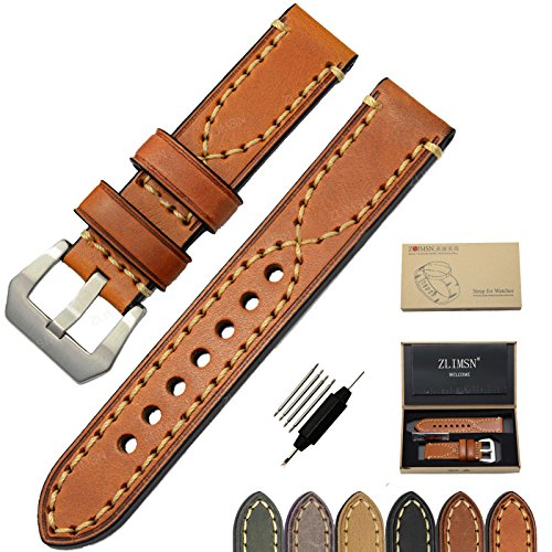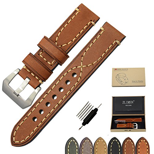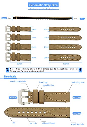 High Quality Watch Bands For Men Vintage Genuine Leather Watch Bands For Men With Brushed 316L Stainless Steel Silver Buckle (Large Buckle)Packed 1pcs Per Box With Free One Small Remove Tool & FREE 4 SPRING BAR PINS(WATCHBAND REMOVER TOOL)