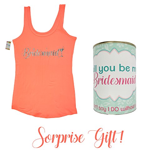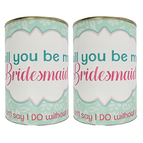 PERFECT GIFT AND SURPRISE FOR YOUR BRIDESMAID. 2 pack of t-shirts inside a sealed can. The can have a message that said " will you be my bridesmaid" "I can´t said i do without you". This is a perfect gift and original way to said to your bridesmaid that is special for you. If you have a large group of bridesmaids and maid of honor, we have in amazon 2 pack of both options and also a white t-shirt for the bride with text "bride", so you can buy all the quantity you need.