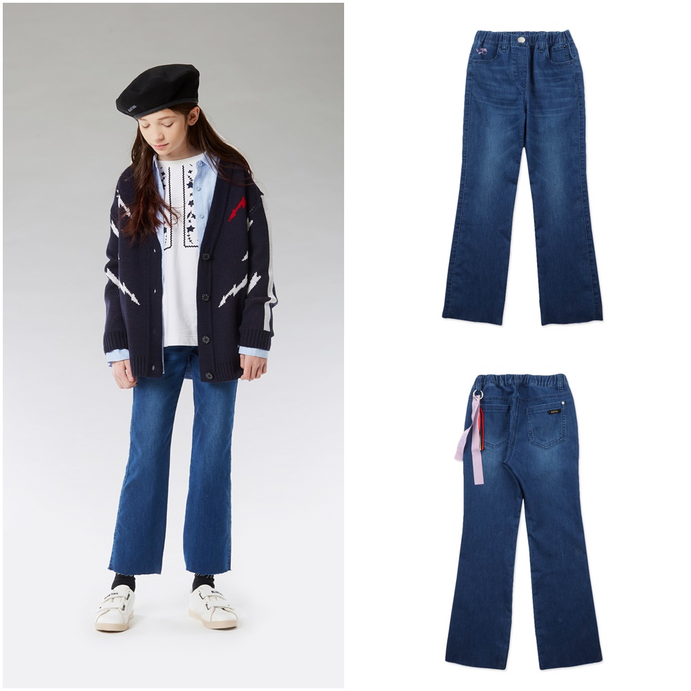 벨트고리에 보헤미안 스러운 컬러의참 장식을 달아서 연출한 트렌디하면서도 블러섬한 데님 팬츠입니다.