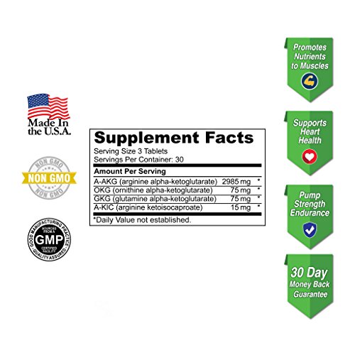 2985 mg of A-AKG (Arginine Alpha-ketoglutarate). 75 mg of OKG (Ornithine alpha-ketoglutarate). 75mg of GKG (Glutamine alpha-ketoglutarate). 15 mg of A-KIC (Arginine Ketoisocaproate). The combination of these four ingredients have been specifically formulated to work synergistically, which provides you with an extremely effective Pre-Workout Supplement.