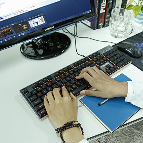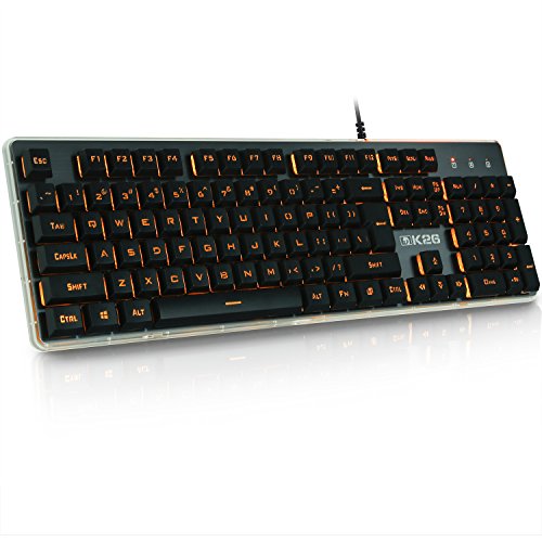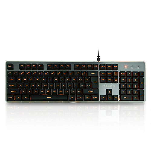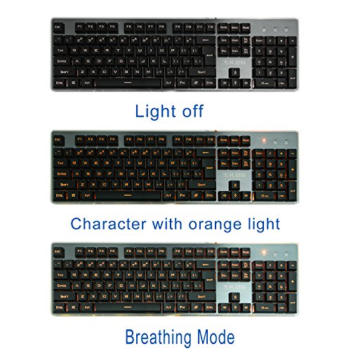 GAMER'S EQUIPMENT:104 keys, 26 keys non-conflict, mechanical feel keyboard, strengthened space key. Specially designed keys for enhanced durability and tactile feedback, mechanical keyboard feeling.