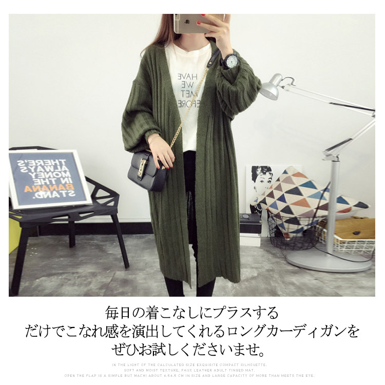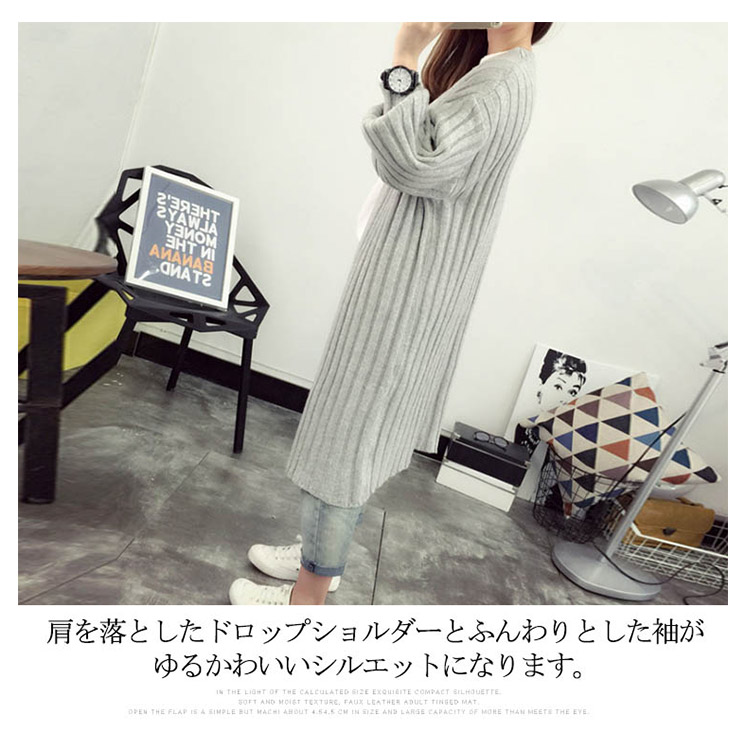 | 羽織るだけでこなれた印象に今年大人気な膝丈ニットカーディガンが登場しました!肩を落としたドロップショルダーとふんわりとした袖がゆるかわいいシルエットになります。膝ぐらいにかかるロング丈なので体型カバー効果も◎体型を気にせずにゆったりと着られるのも嬉しい。毎日の着こなしにプラスするだけでこなれ感を演出してくれるロングカーディガンをぜひお試しくださいませ。 | |