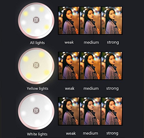 9 different brightness levels: There are 4 yellow lights and 4 white lights with 9 different levels of brightness. Easily adjust the brightness level by pressing single button. It can beautify the face and make the eyes bright in the photography. With this selfie fill light you will never have to worry about the dark environment again. And you'll find the perfect lighting needed for your photos.