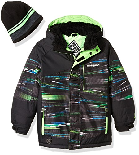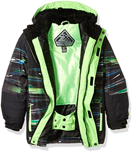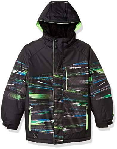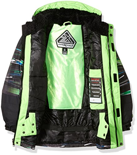 He'll have plenty of protection in this extreme snowboard jacket by ZeroXposur. Featuring a removable hood and a soft fleece lining. The colorful, geometric print will make him the most stylish girl on the mountain.Feature