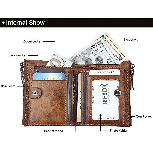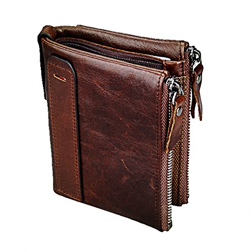 -. Title : Men's Leather Wallet Genuine Leather Cowhide Zip Wallet Vintage Bifold With Double Minimalist Vintage Wallets Pockets
