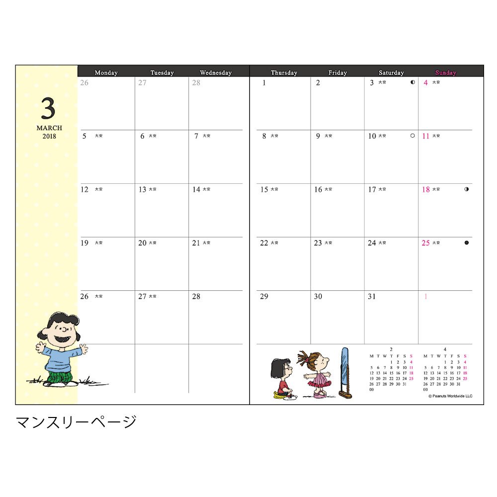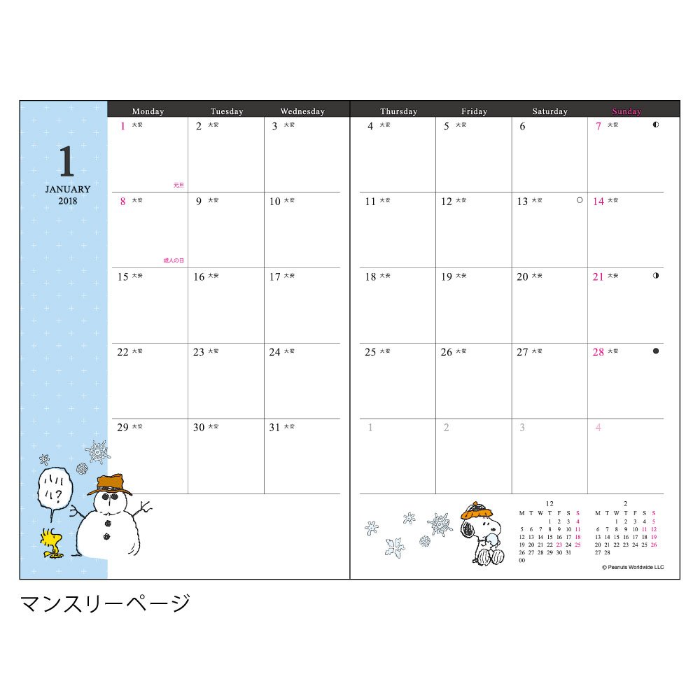 : H150 × W105 × D4 mm <br /> Medium Paper Size: H 145 × W 100 mm <br /> Country of Origin: Japan <br /> <br /> ■ Monthly Page <br /> Response Period 2017.10-2018.12 <br /> Holidays