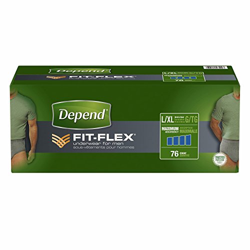 -. Binding : Health and Beauty -. Brand : Depend -. EAN : 0607169102349 -. Feature : Depend FIT-FLEX Incontinence Underwear for Men is flexible to move with you unlike bulky adult diapers / Confidence Core technology for fast absorption and worry-free odor control provides incontinence protection where men need it most / Disposable underwear with a comfortable underwear-like waistband and brief-like leg openings you won't find with adult diapers / Maximum absorbency pants and are soft and lightweight in a neutral gray color -. IsAdultProduct : 0 -. Label : Depend -. Manufacturer : Depend -. MPN : 46499 -. PackageQuantity : 1 -. PartNumber : 46499 -. ProductGroup : Health and Beauty -. ProductTypeName : HEALTH_PERSONAL_CARE -. Publisher : Depend -. Studio : Depend -. Title : Depend FIT-FLEX Incontinence Underwear for Men with Maximum Absorbency, Size L/XL, 76 ct. (pack of 2) -. UPC : 607169102349