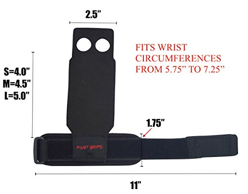 Studio : PIVOT gRIPS Publisher : PIVOT gRIPS Binding : Misc. Product Description PIVOT gRIPS is a family owned and operated company with a vision to further enhance an individual's workout by providing a hand and wrist protection product that separates itself from the competition. Based out of Connecticut, PIVOT gRIPS was established in June of 2016 once our vision was transformed into a physical product. The intention of our Patent Pending design is to give a fitness enthusiast the option to have instantaneous hand protection during WODS, High Intensity Interval Training, Cross Training, Gymnastics and various other weightlifting movements. We accomplished this through our unique pivot screw design that allows rotation of the hand protection during workouts with pull-up bar, kettlebell, dumbbell and barbell movements. The transition is fast enough so that someone performing a workout for time can do this without delaying their finish. As many fitness enthusiasts are aware, no hand protection allows for the natural movement of the barbell while performing Olympic lifts. PIVOT gRIPS provide rip/callus support instantly without dealing with removal of the entire wrist strap or having the gymnastics grip dangle. The durable palm protection(leather free) and comfortable neoprene wrist strap material make for an excellent all-encompassing hand support for all forms of fitness. Ensure that you have a full grip on the pull-up bar. Holding on by the fingers will put strain on the material and reduce the product's effectiveness. Please see the size chart in the photos above. We highly recommend going with the larger size if you are in between dimensions. Picking an option that is too small will cause extra tension on the pivot assembly. Using the wraps for the first time: Align the pivot button to the center of the underside of the wrist. The grips can be used on either wrist. Enjoy! 0
