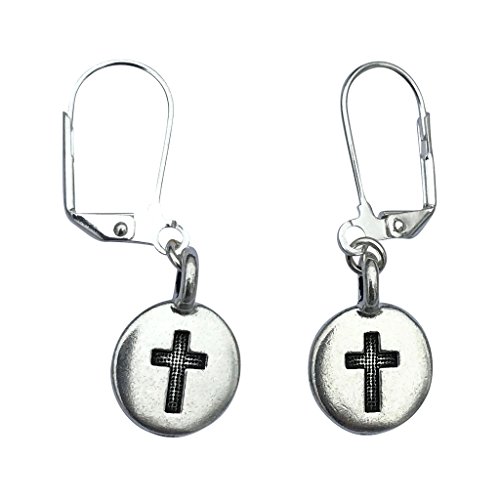 This cross charm jewelry set also comes with matching silver plated lever back earrings, each with a silver cross charm.