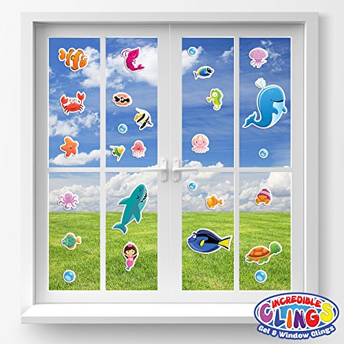 - ✔ Unique 30 Piece Set in an 11" x 12" Package Contains Small and Larger Fun and Cute Sea Characters - Whale, Sea Turtle, Crab, Starfish, Clown Fish, Hermit Crab, Octopus, Squid, Sea Horse, Little Mermaid, Clam, Bubbles, Angel Fish, Shark, Blue Tang, Dory and More for a Window Sticker Cling Aquarium
