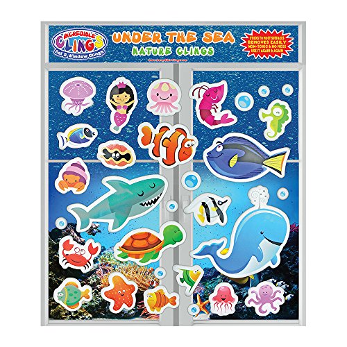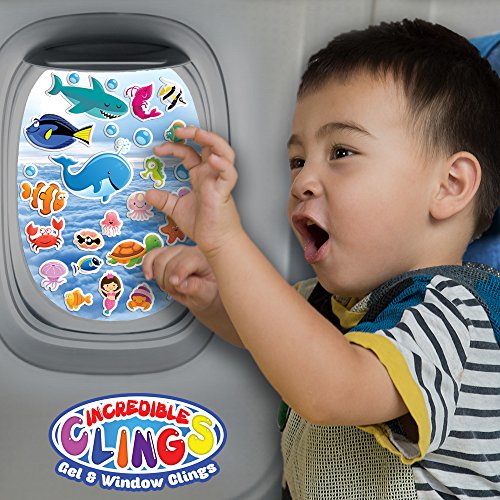 Under the Sea Ocean (30 piece) Incredible Gel and Window Clings - Reusable Removable Puffy Sticker Pack for Kids and Toddler Boys and Girls - Underwater, Turtle, Mermaid, Shark, Whale, Octopus, Fish