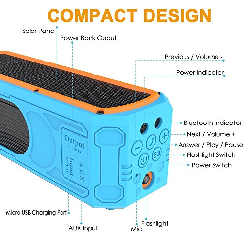 Geniessen Sie Ihre Musik in 10w vollem Stereo-Korper, realisiert durch doppelte hohe Leistungstreiber und einem besonderen verstarkten Bass. Ipx5 spritzwasserfestes, stossfestes und tragbares Design, perfekt fur Partys, Bergsteigen, Wanderungen, Camping, Reisen und mehr.