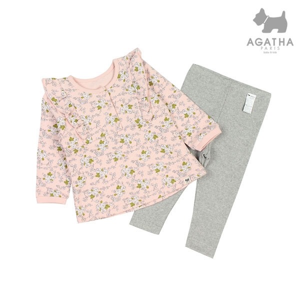 체리프린트와 꽃프린트를 사용한 삼중지 소재로 보온성이 좋은 여아 프릴 상하세트입니다.
