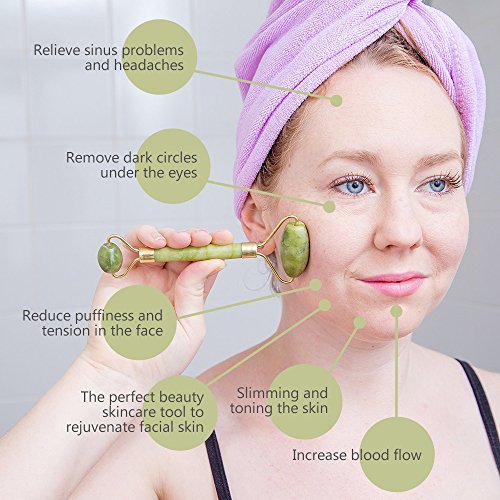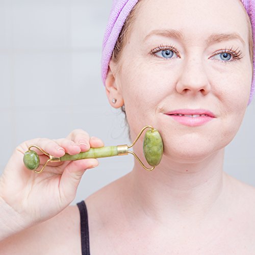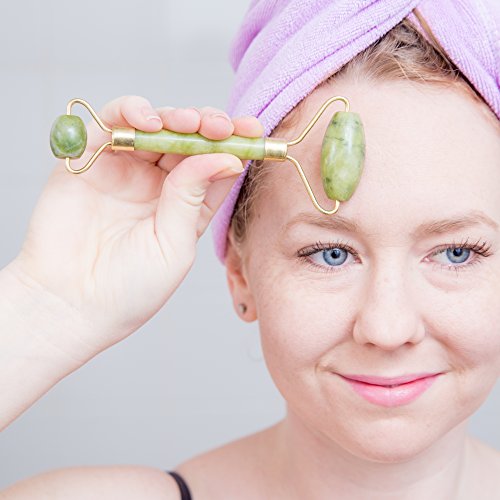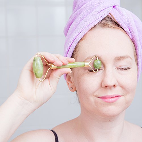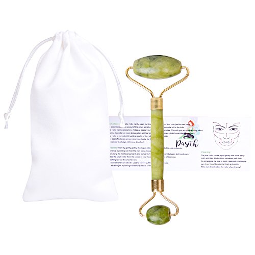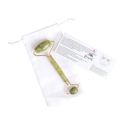 Pasith Authentic Jade Face Massage Roller - 100% Real Natural Jade Stone - Facial Beauty Massager - Therapy To Reduce Stress & Anti-Age - With Free Ebook, Storage Bag & Instructions - For Face & Eyes