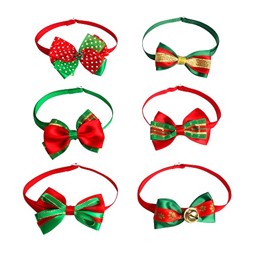 -. Title : Ewolee 6pcs Christmas Small Dog Bow Ties Cat Dog Bowties, Adjustable Pet Collars Dog Grooming Products Dog Accessories