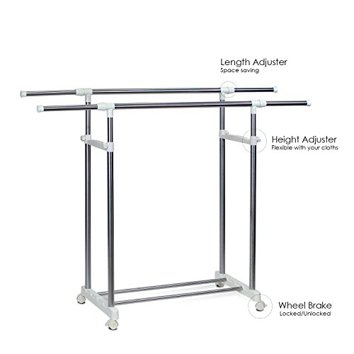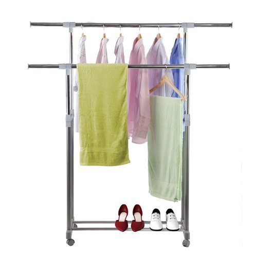 Furinno FNBK-22086 Heavy Duty Dual Level Retractable Rolling Drying Rack