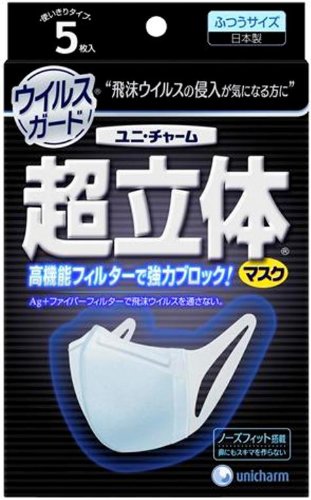 Super Three-dimensional Mask For Virus Guard Regular Size 5pieces