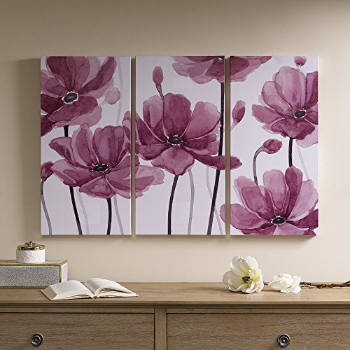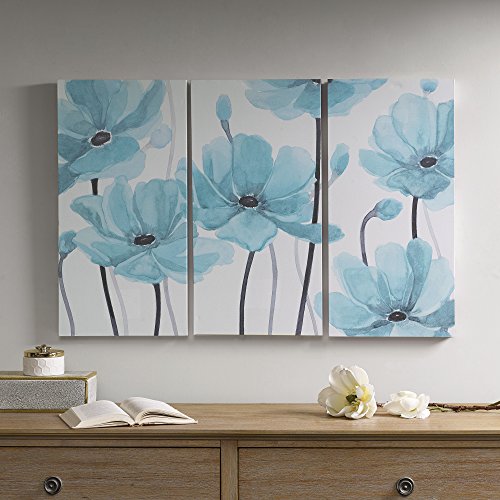 FLORA PRINTED CANVASRich in color, the Décor 5 Flora Printed Canvas 3 Piece Set breathes new life into your home. Large and beautiful printed flowers flaunt brilliant blue hues on a white background, for an eye-catching display. The gentle yet rich color can complement any room décor and wall color theme. The pine wood stretcher bar pulls the canvas tight in a gallery wrapped style, while also providing structure and support. Make a statement in your space with the vivid color and casual style of this three piece printed canvas set.