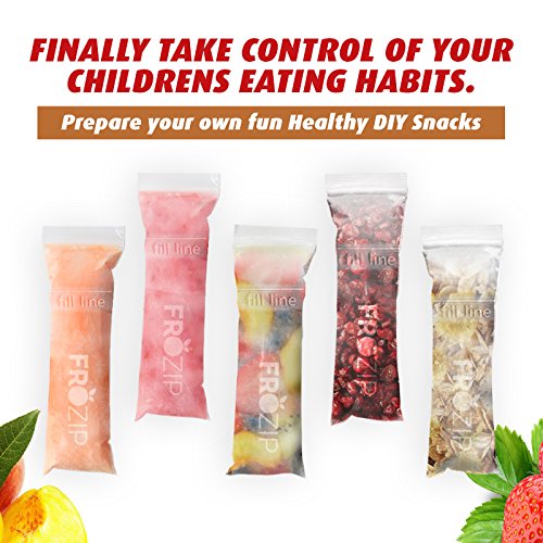 - ➢ NO SPILLING, NO MESS: These disposable popsicle bags can be zip sealed for your extra convenience. Forget about spilling, messy freezers and sticky backpacks. Enjoy the healthiest homemade snack popsicles no matter where you go. Our bags can hold either thick or liquid form fluids. Just lay them flat in the freezer, wait for a few hours and taste!