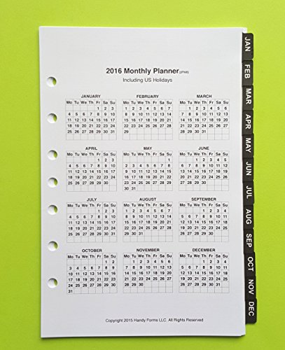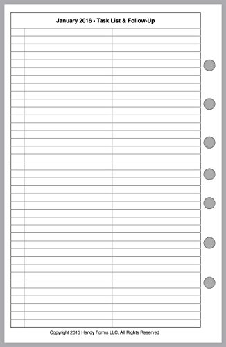 - Feature : Half sheet size monthly planner fully dated for 2016. Includes yearly calendars for 2016 and 2017. Months are separate allowing sheets to be inserted between months. / Week begins on Sunday. / First page of each month is for Notes and Plans, and includes the current plus 2 additional months mini calendars. The next 2 pages are the monthly spread. The last page of each month is for a Task List and Follow-Up notes, and includes a check-off column for completed tasks. / Page size is 5.5" x 8.5". High quality, heavy weight, ultra smooth paper. Acid-free. Paper produced from FSC certified forests. / Punched with 7 holes to fit the Franklin Covey Classic size binders, DayTimer Desk size, Day Runner size 4, and others.