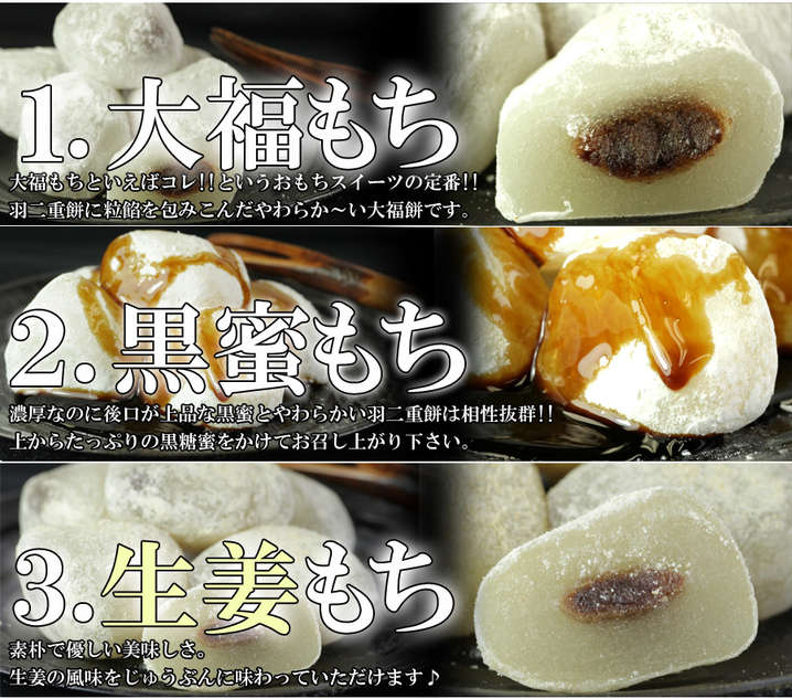●黒蜜もちには、「黒蜜」がついていますのでかけてお召し上がり下さい。
