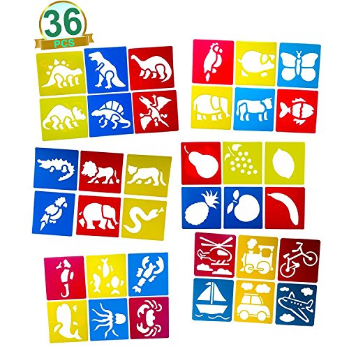 Stencils for Kids - Plastic Drawing Painting Stencil Templates for Kids Crafts (Set of 36)